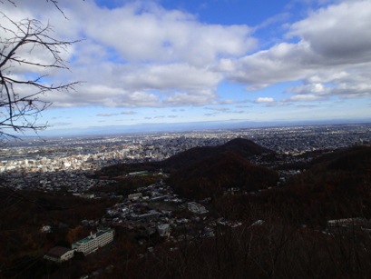 藻岩山山頂(遠くに望む余市岳などには雪がうっすらと)