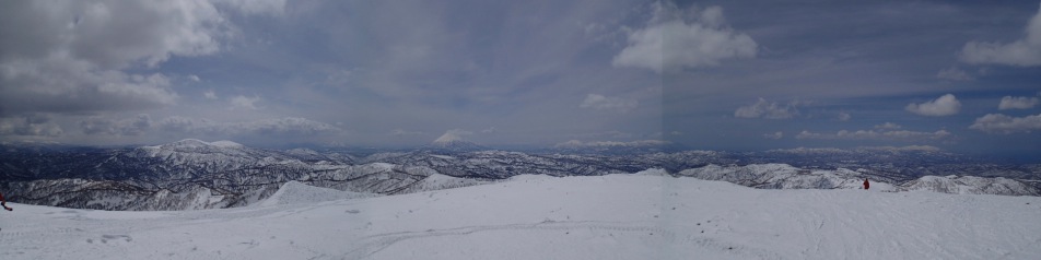 パノラマ。左の白いのは無意根かな。真ん中に羊蹄、右にニセコ連峰。右はしは積丹半島。さすが札幌圏の最高峰。360度のパノラマです。
