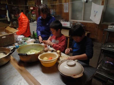 夜は五色温泉旧館に宿泊。鍋の準備をする子供たち。