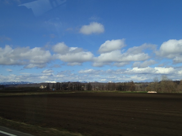 下界は春です。山々がきれい。ひときわ白いのはウペペサンケ。